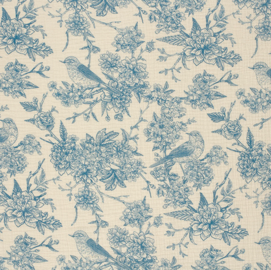 Double gaze imprimé fleurs Cobalt