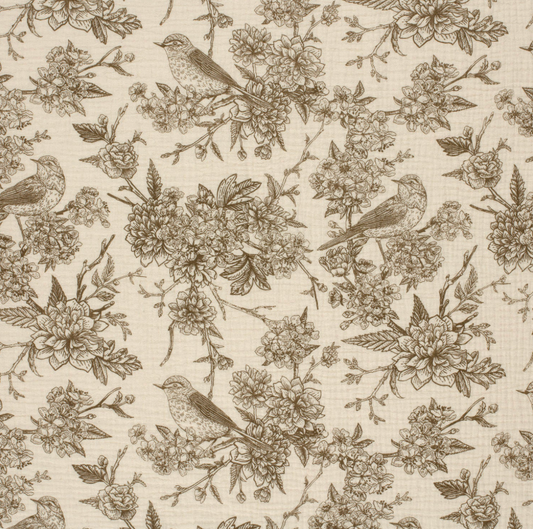 Double gaze imprimé fleurs Taupe