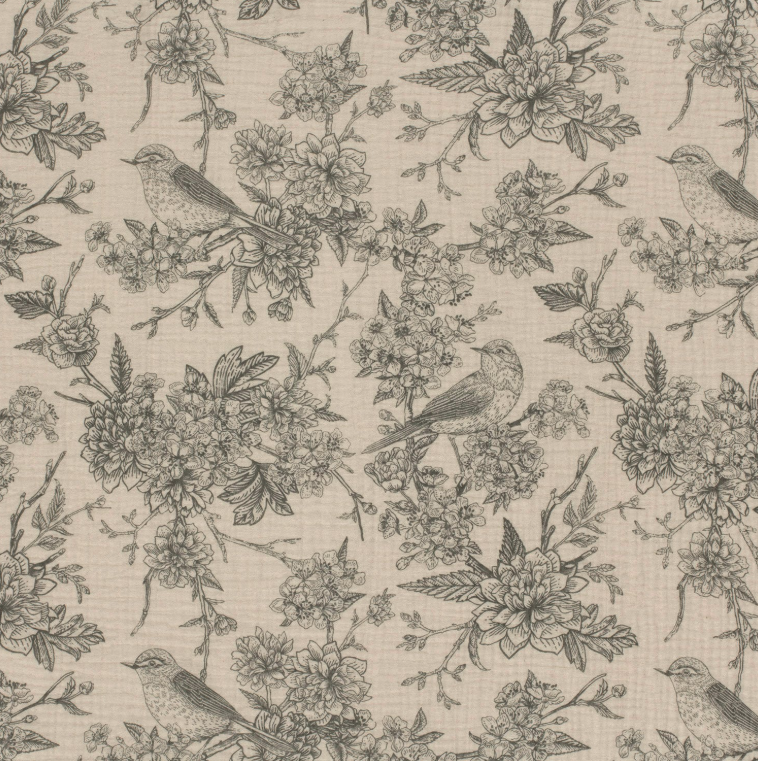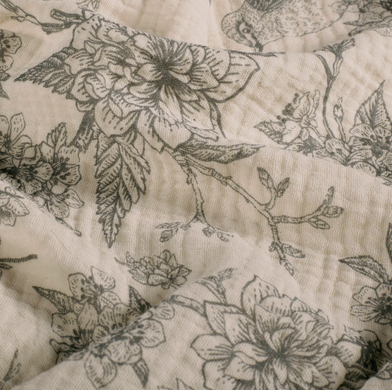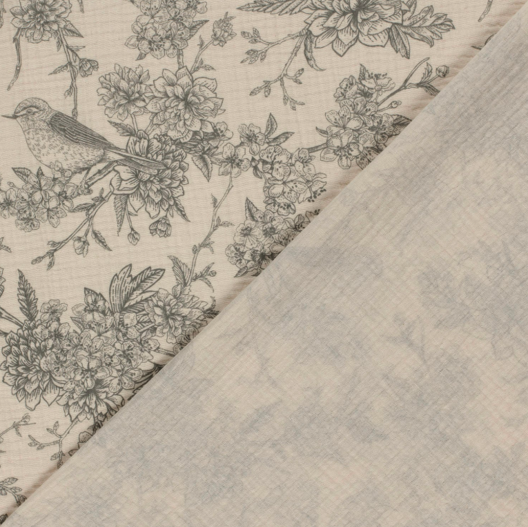 Double gaze imprimé fleurs Gris