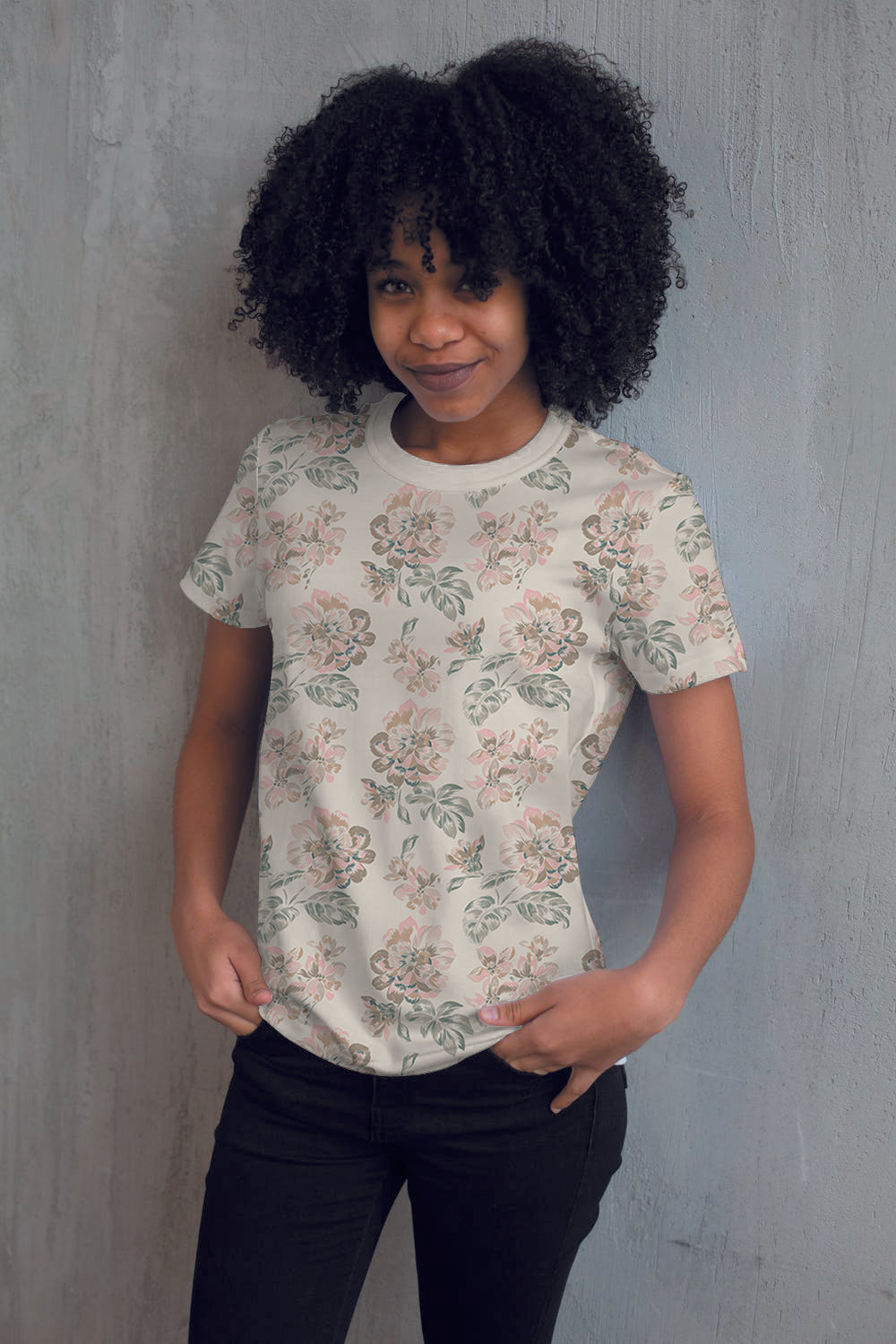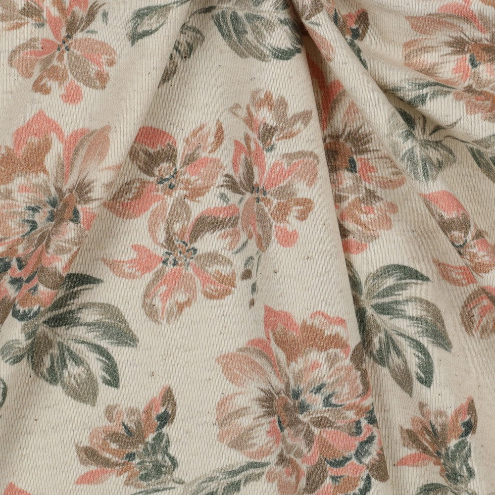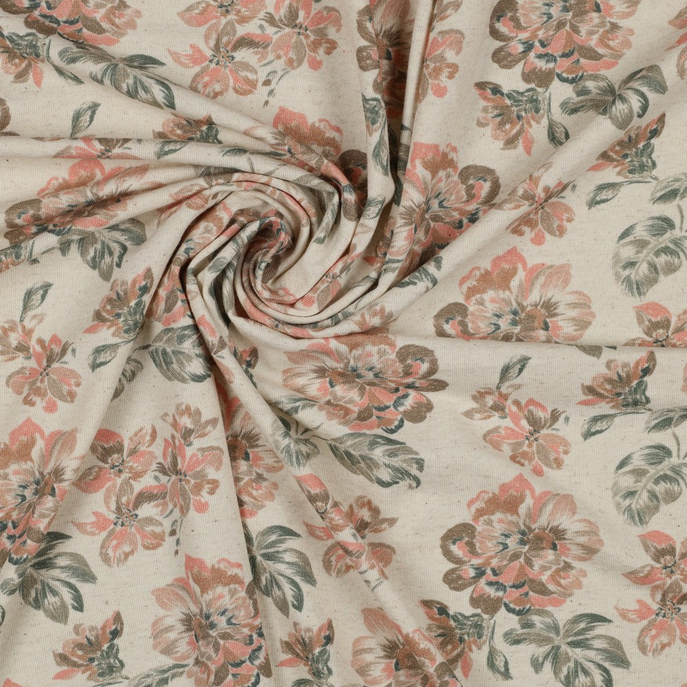 LIN JERSEY DIGITAL FLEURS - ÉCRU